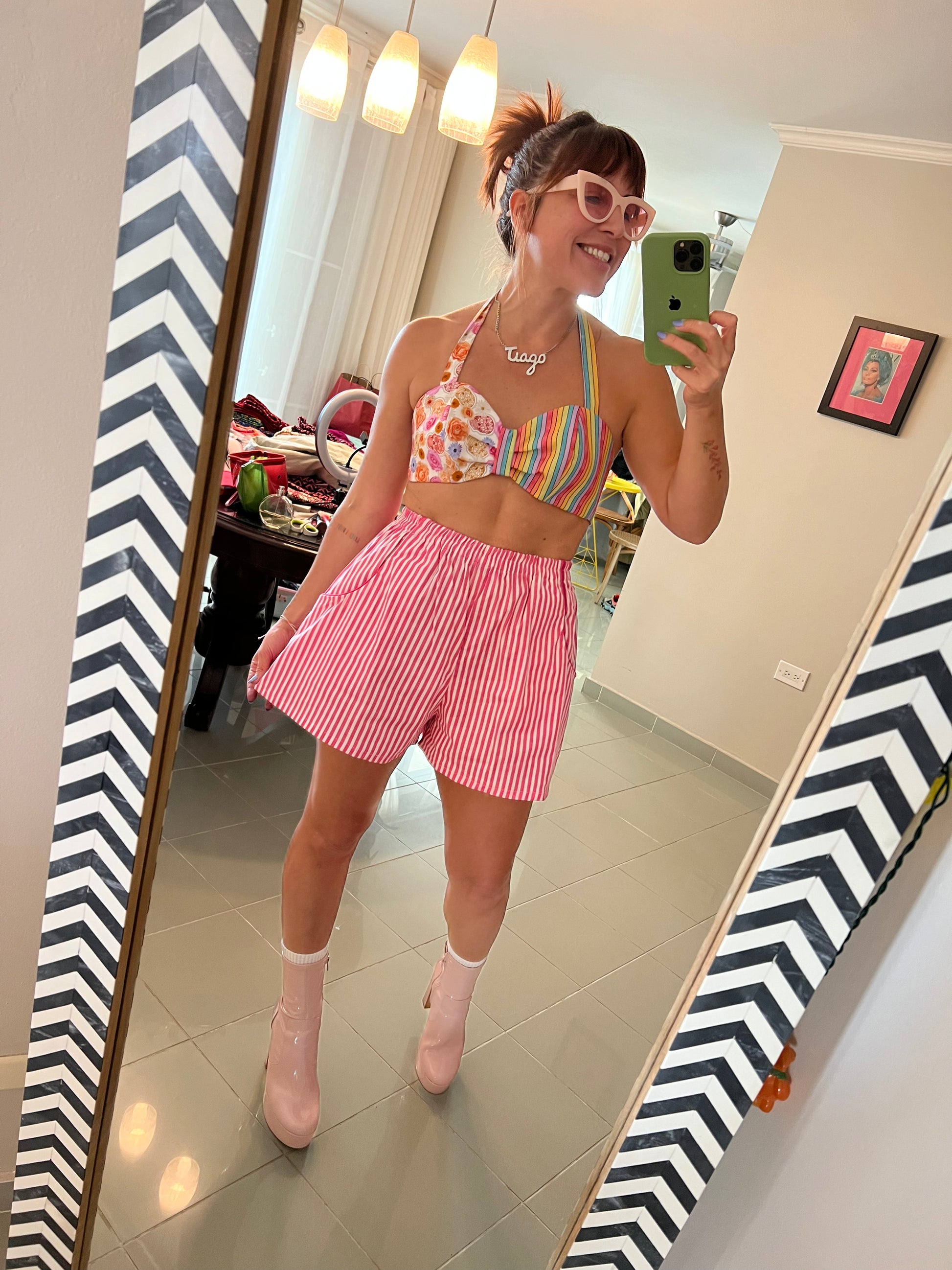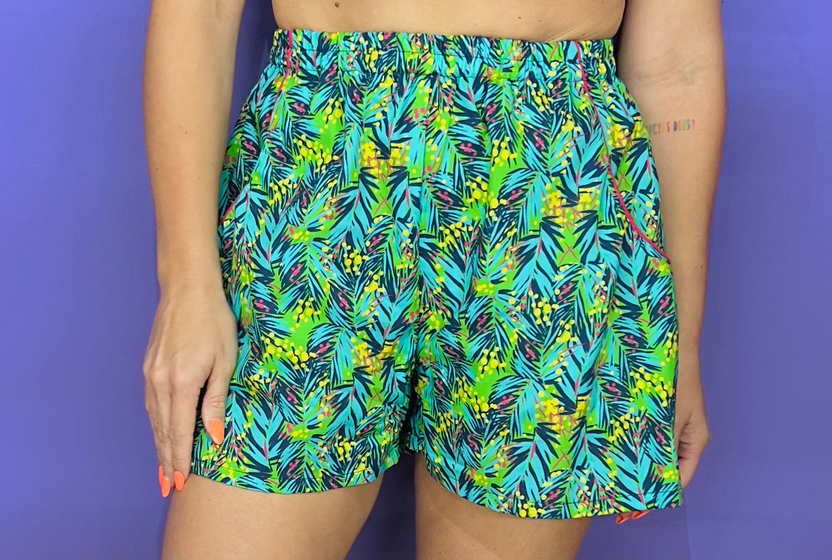 El Gaucho Pant es un short de banda elástica suelto en el área de las caderas, súper cómodo. Este short podría parecer una falda pero con la comodidad de pantalón, con bolsillos a ambos lados.